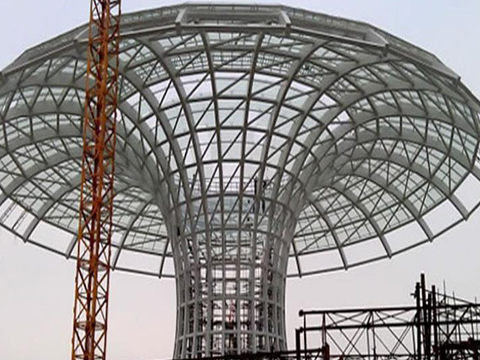 二、球形网架结构因其结构新颖,受力合理,自重轻、用钢量低等优点。如大型体育场馆球形宜昌螺栓球网架、公共场馆球形网架、电厂宜昌螺栓球网架、水泥工业球形网架、仓储物流球形网架、宜昌干煤棚工业球形网架、宜昌收费站宜昌加油站球形网架、展览中心、影剧院、商场、航站楼、候车厅、工厂宜昌车间、仓库、电视塔等球形螺栓球节点网架。国内球形网架结构主要分为:宜昌焊接球节点网架及螺栓球节点网架两种。螺栓球节点网架其构件工厂内加工量较大,现场安装便捷,适用于现场工期紧,宜昌施工条件、用电量受制约,网架形状复杂、宜昌杆件定位困难的异形结构。螺栓球节点球形网架系统基本由宜昌杆件、螺栓球、支撑支座等组成。按照节点形式可分为交叉宜昌桁架体系、四角锥体系、三角锥体系等。支撑方式多为固定支座支撑。对于大面积、大跨度及有特殊受力或伸缩要求的网架结构可采用橡胶支座、滑移支座、球铰支座等支撑形式,以满足结构自身的受力稳定、均衡,便于内力释放等设计要求。
